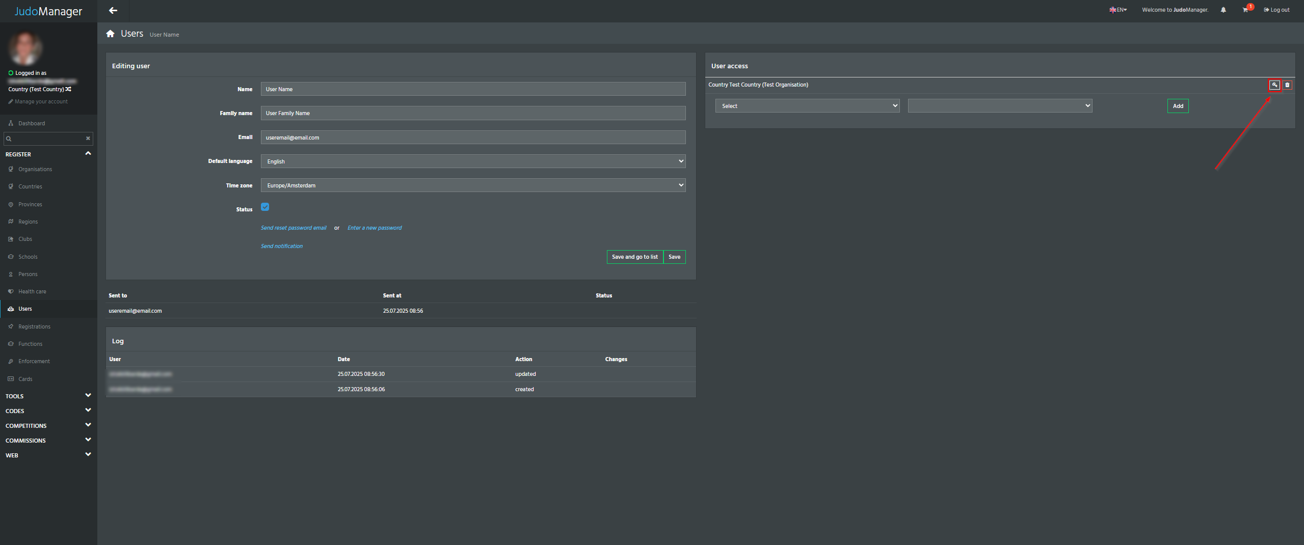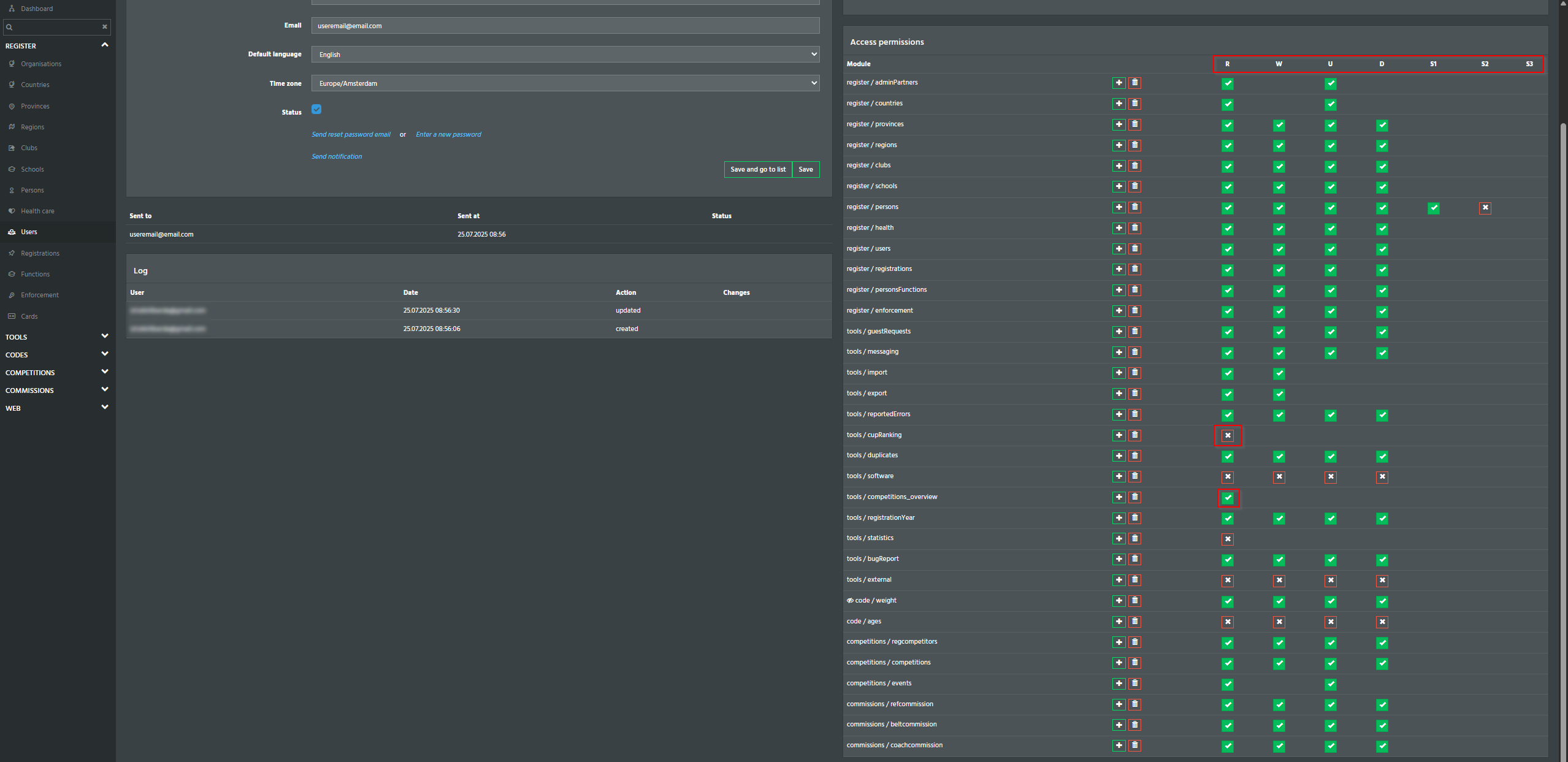 Use this guide to give a user access to specific modules in JudoManager (e.g., register / countries, competitions / events). Permissions are scoped to an organization (country, region, or club) and use four levels: