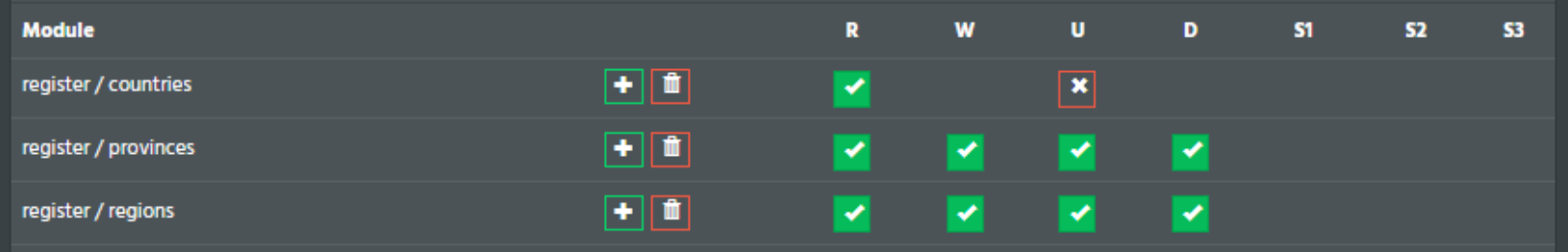 This section is used to manage the geographic structure within your federation. Each user with the Country Administrator role can view and edit their own country's data, including translations, provinces, and regions. To work with countries, provinces and regions your account must have the following permissions (modules: register/countries