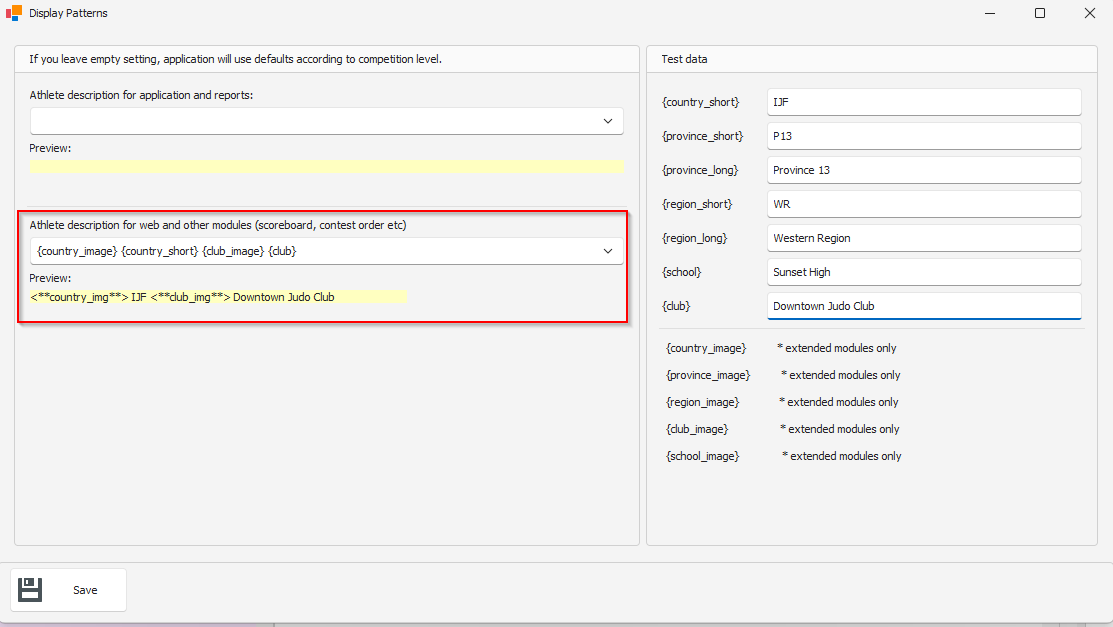 In addition to the global Display Pattern settings, every live module in JudoManager also includes its own Manual Pattern option. This meands that each module can display athlete information differently, allowing complete flexibility for organizers.